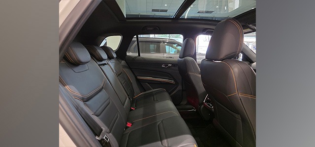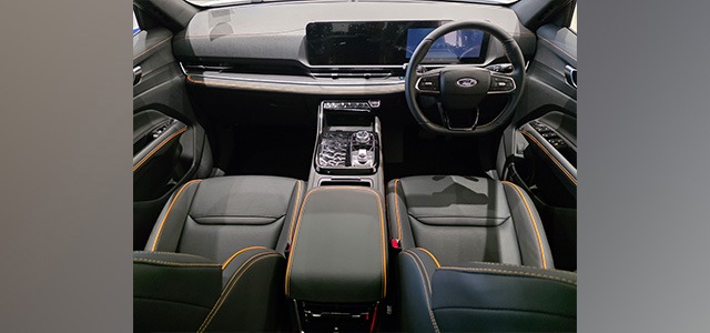Stepping into the cabin, the Territory Dark Edition’s charcoal-black headliner and pillars are set against black leather perforated seats, door trims, and instrument panel inserts with Cyber Orange stitching. This contemporary look and feel reinforce the Territory’s modern, family-oriented character and create visual interest.